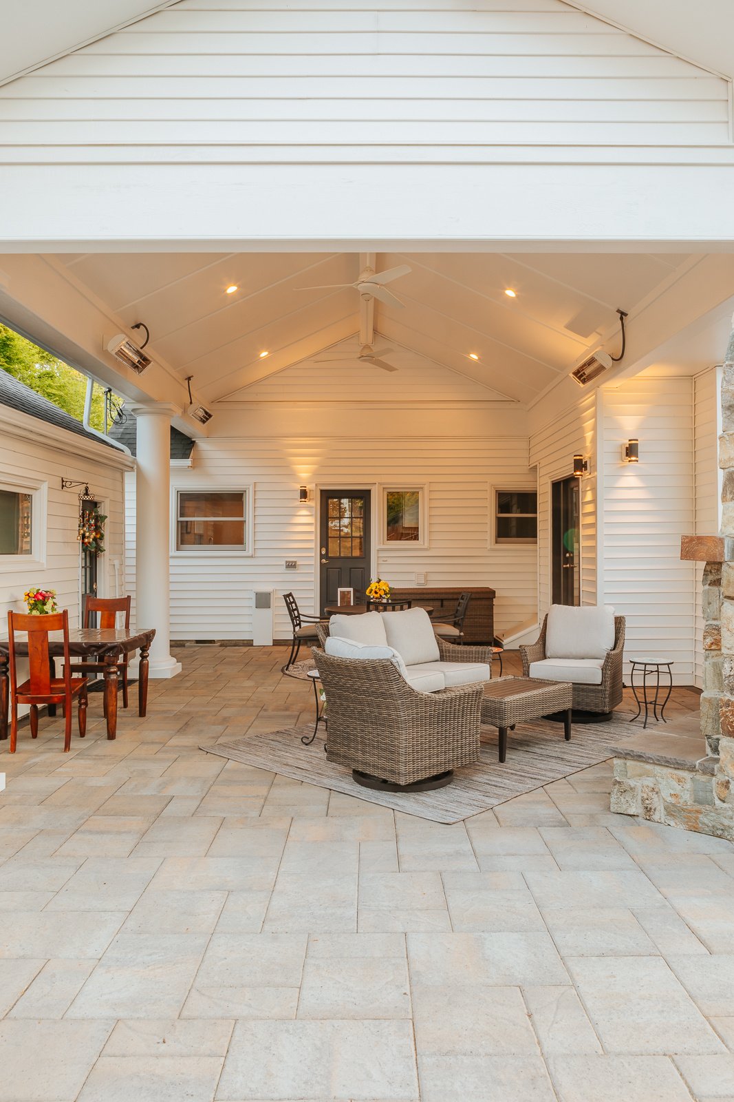 The completed remodel gave the homeowner a beautiful outdoor space perfect for year-round use. The covered patio and garden hardscaping not only enhance the home’s exterior but also provide a welcoming place for gardening and family gatherings.